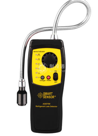 鹵素檢漏儀靈敏度很高,能檢測到0.3g/年的泄漏量,但價格較高,使用時將槍頭(又稱吸氣口)對準需要檢漏的部位,若吸入的空氣中含有氟利昂分子時,則鹵素檢漏儀上的指針就擺動,同時發(fā)出聲響信號,表明該處泄漏,當周圍空氣中含有氟利昂分子時,將造成鹵素檢漏儀的誤動作,所以在使用時應注意通風,由于氟利昂氣體有擴散作用,使用鹵素檢漏儀只能找出檢漏部位的大概位置,因此還應再用肥皂水確定其具體漏點。