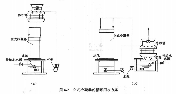 立式冷凝器的循環(huán)用水方案如圖4-2所示。