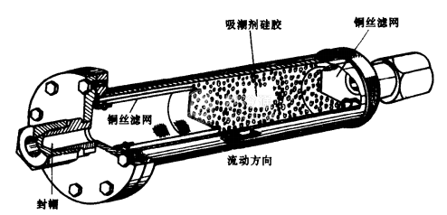氟利昂制冷循環中必須預防水分和污物(油污、鐵局等)侵入,水分的來源主要是新添加制冷劑和潤滑油所含的微量水分,或由于檢修系統時空氣侵入而帶來的水分。如果系統中的水分未排除干凈,則當制冷劑通過節流效時,因壓力及溫度下降,有時水分會凝固成冰,使通道阻塞影響制冷裝置的正常運轉。又如管道、冷凝器和蒸發器, 若事先沒有徹底清洗,而有鐵周及雜質殘存在系統中,就會堵塞通道并損壞運動部件。因此,在系統中必須安裝過濾器和干燥器。