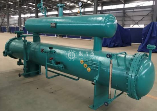 在放空氣過程中,混合氣體中的氨氣逐漸被1管中低壓氨液冷凝為液體積存在底層,當(dāng)外殼底部結(jié)霜高度到它本身高1/3~1/2時(shí),應(yīng)關(guān)閉供液節(jié)流閥,同時(shí)開啟回液節(jié)流閥(注意回液節(jié)流閥開啟時(shí)間不能過早,否則底層冷凝的氨液一旦排完,將會(huì)使混合氣體中的空氣返回低壓系統(tǒng)中),使底部氨液自行進(jìn)入1管中,繼續(xù)進(jìn)行冷凝混合氣體中的氨氣任務(wù),而本身變成氨氣從3管中回到低壓系統(tǒng)中。