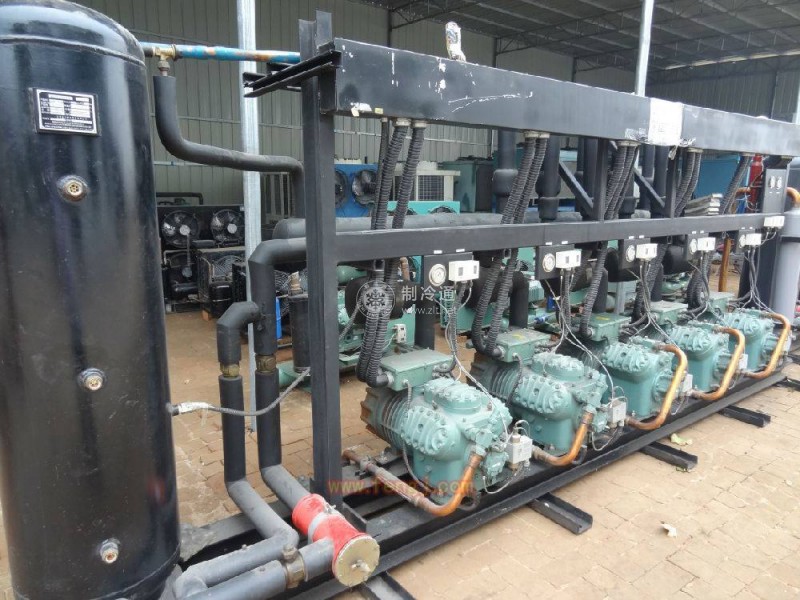 3.開啟冷凝出液閥稍許,然后擰松加氟管的活接頭,把管內的空氣趕出,再把活接頭螺絲擰緊。開啟冷凝器出液閥半圈,查看是否有泄漏的現象,若無泄漏處,可全部開啟冷凝器出液閥,打開氟瓶閥,使氟利昂工質進入鋼瓶。開啟壓縮機將低壓設備中的氟利昂工質抽到冷凝器,冷凝后的氟液進入鋼瓶,若氟瓶中原有少量的氣體且壓力較高,可在機器的吸入閥旁通螺塞處接上加氟管,將氟瓶內的壓力抽到0.05MPa,再按以上方法將氟瓶接到冷凝器出液閥上。這樣氟瓶進液快。