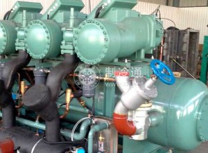 (2)打開供液閥,通過浮球閥向低壓循環桶供液,也可通過手動膨脹閥控制供液。制冷系統在運行過程中,低壓循環貯液桶內的液面應保持在1/3左右。一般低壓循環貯液桶的液位由浮球閥自動控制。如用手動控制液位,當冷間開始降溫或停止降溫時熱負荷變化較大,應注憊低壓循環桶的液面變化,隨時進行調整,以保持正常的液面高度。低壓循環貯液桶的液位應嚴格控制,既要保證氨泵正常工作所需的最低吸入壓頭,又要不會因液位過高而引起壓縮機的濕沖程。