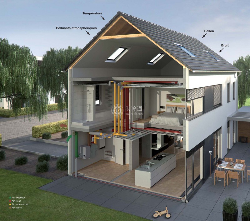 半集中式空調系統就是將各種非獨立式的空調設備分散設置,而將生產冷、熱水的冷水機組或熱水器和輸送冷熱水的水泵等設備集中設里在中央機房內。半集中式空調系統中負擔室內負荷的介質既有空氣又有水,因此也稱為空氣一水系統。