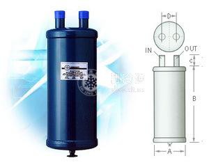 制冷設備氟用氣液分離器是一個用鋼板卷焊成的密閉壓力容器,上部有出氣管接頭,中下部有進氣管接頭,下部有排液口。分離器內上部有一擋液板,來自蒸發器的濕飽和蒸氣由進氣管進入,經擋液板進行氣液分離,分離后的干飽和蒸氣經出氣管送往壓縮機。分離后的液體經排液口流入排液桶或低壓貯液桶。