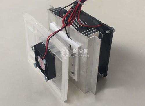 當(dāng)這個制冷器件中通入一定數(shù)量的直流電時,冷端會逐漸冷卻下來,并出現(xiàn)結(jié)霜;而熱端的溫度逐漸升高,并向周圍環(huán)境放熱。載流子在金屬和半導(dǎo)體中的勢能大小是不同的,所以載流子在流過結(jié)點時,必然會引起能量的傳遞。
