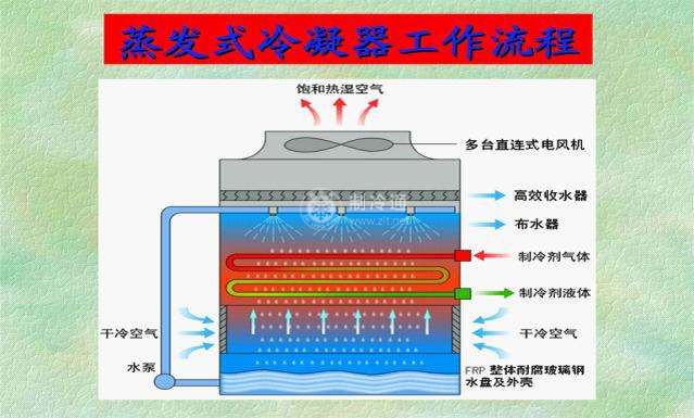 再者,蒸發式冷凝器所需傳熱面積約為水冷式的2倍,而冷凝溫度可以保持在35℃~37℃以下,全面權衡蒸發式冷凝器的初投資和水冷式冷凝器與冷卻塔組合使用時的費用,使用蒸發式冷凝器是經濟的,故目前采用蒸發式冷凝器的已逐漸增多。