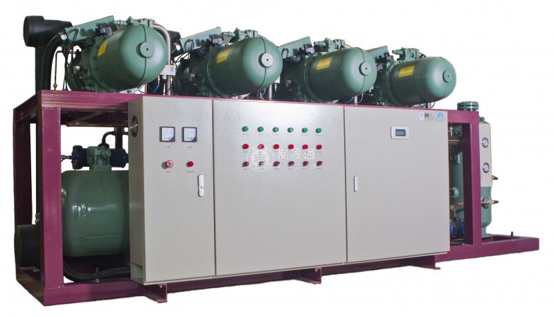 (4)打開旁通閥(目的是為了減少啟動電流),接通電源,將油浸啟動變阻器的手輪,從啟動位置按規定速度移至運轉位置(1K系列三相繞線轉子異步電動機)。對于油浸補償器的啟動方法,可將手把推向啟動位置,待達到正常轉速時,再將手把拉向運行位置。如是JS系列三相鼠籠式異步電動機,只需按低壓啟動補償器的“啟動”按鈕就可啟動電動機,在上述電動機啟動的同時,迅速打開排出閥,關閉旁通閥。對于新系列制冷壓縮機,則先打開排出閥,將負荷調節器手柄對準“0”位,以空載啟動電動機。