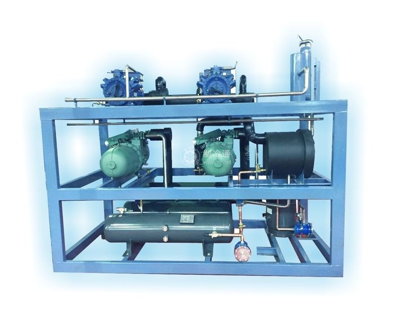 (7)開啟蒸發(fā)冷凝器F-13的出液閥(馬上即可結(jié)霜),調(diào)節(jié)F-13蒸發(fā)器膨脹閥,使之滿足低溫的需要。對于一般小低溫箱,如D-8/0.4及其他低溫箱新投入運(yùn)行時,可參照說明書進(jìn)行啟動。啟動時仍然先打開冷卻水,然后將兩臺制冷壓縮機(jī)的吸排氣閥和回油閥開啟,排出閥倒回1/2圈~1圈,先試啟動下,以檢查運(yùn)轉(zhuǎn)方向是否正確。