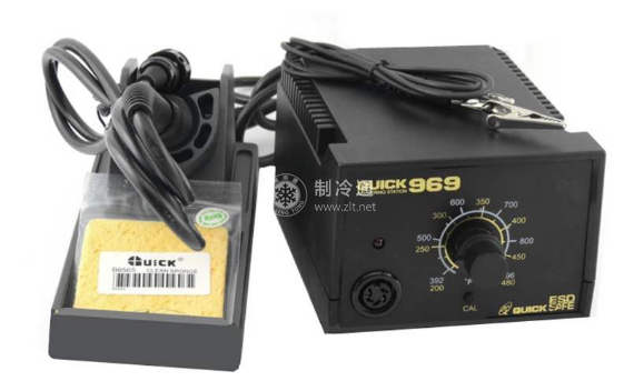 電烙鐵。在制冷設備的維修中,通常選用功率為150 W -250W的電烙鐵。它是通過電烙鐵加熱熔化焊錫對銅管或鋁蒸發器進行補漏焊接,適應于無專業焊接設備及上門維修的場合使用。