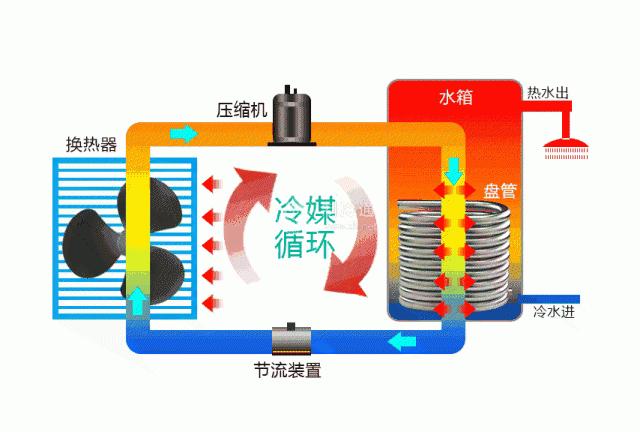 工作過程:低溫低壓的空氣或制冷劑在制冷換熱器中低壓吸熱升溫后進入壓縮機,被絕熱壓縮升溫升壓,然后進入冷卻器冷卻到常溫(將熱量釋放給環境介質水或空氣)后進入膨脹機,在膨脹機內進行絕熱膨脹,降溫降壓后進入制冷換熱器內繼續吸收被冷卻物體的熱量(實現制冷),溫度升高后又被吸入到壓縮機進行新的循環。