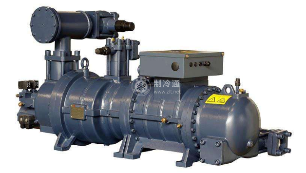 (1)結構 單螺桿式制冷壓縮機主要由機體、螺桿、星輪、軸承、軸封、淤閥及能量調節(jié)裝置組成。單螺桿壓縮機是由一個圓柱形螺桿和兩個對稱配置平面星輪嚙合來工作,由于該螺桿轉子兩端受到大小幾乎相等、方向相反的軸向力,因此可以省去轉子的平衡活塞,單螺桿式制冷壓縮機中的螺桿轉子齒數(shù)與相匹配的星輪齒數(shù)之比一般為6: 11,這種結構有利于減小排氣脈動.增加排氣的平穩(wěn)性。