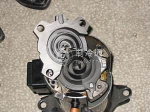 在動渦旋盤的運轉中,動、靜渦旋盤的接觸線沿渦旋曲面不斷地向中心移動,它們之間的相對位置由安裝在動、靜渦旋盤之間的十字滑環來保證,該滑環上部和下部十字交叉的突肋分別與動渦旋盤下端面鍵槽及機座上的鍵槽相配合,并在其間滑動。吸氣口設在靜渦旋盤的外側面,排氣口設在頂部端面的中心部位,壓縮機工作時,制冷劑氣體從吸氣口進入動、靜渦旋盤間最外圈的月牙形空間內,隨著動渦旋盤的運動,氣體向中心空間逐漸推移,其容積不斷縮小而壓力不斷升高,直至被壓縮的高壓制冷劑氣體從靜渦盤中心處的排氣口排出。