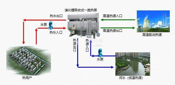 吸收式熱泵有兩種類型:輸出熱的溫度低于馭動熱源的第一類熱泵(增熱塑)和輸出熱的溫度高于馭動熱源的第二類熱泵(升溫型)。第一類吸收式熱泵用于采暖和制備生活熱水,第二類熱泵常用干制備工業熱水和蒸汽。