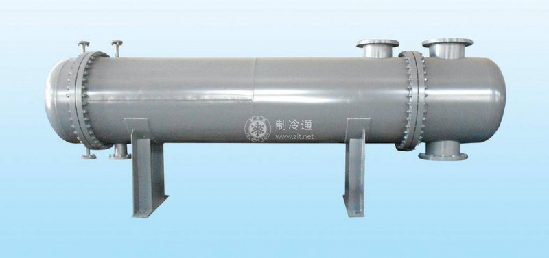 臥式殼管式冷凝器的冷卻水進(jìn)、出口設(shè)在同一端蓋上,來(lái)自冷卻塔的低溫冷卻水從下部管道流入。從上部管道流出,使冷卻水與制冷劑進(jìn)行充分的熱交換。端蓋的頂部設(shè)有排氣旋塞,下部設(shè)有放水旋塞。上部的排氣旋塞是在充水時(shí)用來(lái)排除冷卻水管內(nèi)空氣的,下部的放水旋塞是冬季用來(lái)在冷凝器停止使用時(shí),將殘留在冷卻水管內(nèi)的水放干凈,以防止冷卻水管凍裂或被腐蝕。