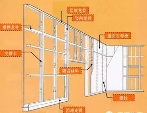 隔墻安裝完畢,墻面應做基層處理。一首先掃除墻面浮灰,若墻面有損壞和暴露石膏部分,應用聚乙烯醇縮甲醛(107膠)與水為1:9的水溶液涂刷一遍,待膠層干燥后進行修補嵌縫。除明縫以外的橫豎接縫(包括石膏板之間和石膏板與頂棚、側墻的接縫)必須嵌縫并粘貼接縫帶。