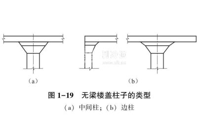 2)無梁樓板柱 無梁樓板柱分中間柱(中柱)、邊柱兩種,如圖1-19所示。邊柱又分為懸臂式及靠壁式兩種。