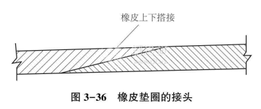 為了防止冷風機各段法蘭接口不嚴密,法蘭間的橡皮墊圈不能對口平接,而應上下搭接,如圖3-36所示,橡皮墊圈的邊沿不應凸出法蘭以外。