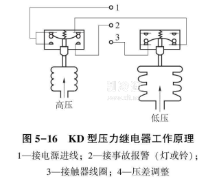 該繼電器的高低壓氣箱各有一個(gè)接口,分別通過接管與制冷壓縮機(jī)的吸氣腔和排氣腔連接,兩氣箱接收到異常壓力信號后產(chǎn)生位移,通過頂桿直接與彈簧的彈力聯(lián)合作用,使杠桿分別推動各自的微動開關(guān),切斷壓縮機(jī)電源,保護(hù)性停機(jī)。