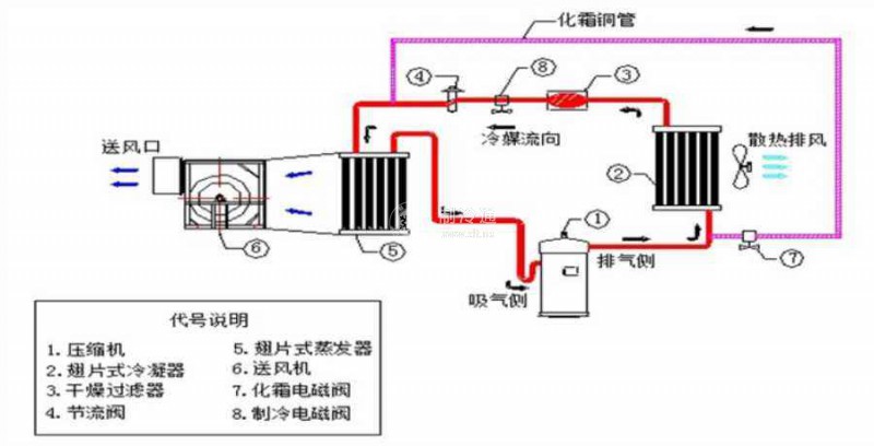 (4)膨脹閥:拆出進液濾網清洗,檢查感溫包及毛細管的安裝。對使用性能良好的膨脹閥,檢修時可不拆解。
