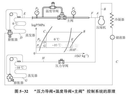 這種控制方式的布置如圖5-32所示,它的主要作用是控制被冷介質的溫度,同時其對蒸發壓力也起控制作用。