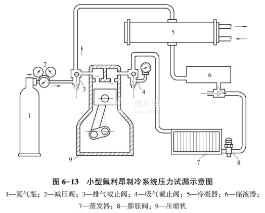 1.氟利昂制冷系統的壓力試漏(見圖6-13)