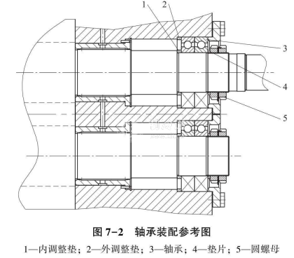 (10)放入調整墊片、止推軸承,并以圓螺母將止推軸承內座圈堅固在轉子軸頸上,要注意止推軸承方向。