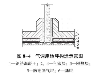 氣調(diào)庫的地坪構(gòu)造與冷藏庫差不多,只是增加了一層氣密層,如圖8-4所示。