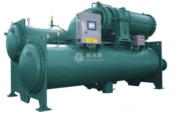 制冷機在運行中,蒸發(fā)器和冷凝器通過接管法蘭與三個流程相通:
