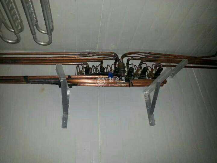 氟利昂熱氣融霜和熱氨融霜類似,但一般不設(shè)融霜排液捅。常見的排液方法有以下三種: ①排氣自回氣端進(jìn)入蒸發(fā)器,被霜層冷卻凝結(jié)成液體后從供液管排出,流至另一組正在工作的蒸發(fā)器中蒸發(fā)。這種排液方法適用于小型制冷系統(tǒng),如單機(jī)多庫的食堂冷庫等;②排氣自回氣端進(jìn)入蒸發(fā)器,被霜層冷卻凝結(jié)成液體后從供液管排出直接排至儲液器,然后經(jīng)恒壓閥節(jié)流降壓后進(jìn)入冷凝器,吸收外界熱量蒸發(fā)成蒸汽后被壓縮機(jī)吸入,一般適用于大型或單機(jī)單庫的制冷系統(tǒng);③排氣從液管進(jìn)入蒸發(fā)器,被霜層冷卻凝結(jié)成液體后由回氣管排出,經(jīng)恒壓閥節(jié)流后,或者經(jīng)蓄熱槽的蒸發(fā)盤管和液體汽化器后再被壓縮機(jī)吸入,或者直接被壓縮機(jī)逐漸吸入,一般只適用于冰箱或單間小冷庫的制冷系統(tǒng)。
