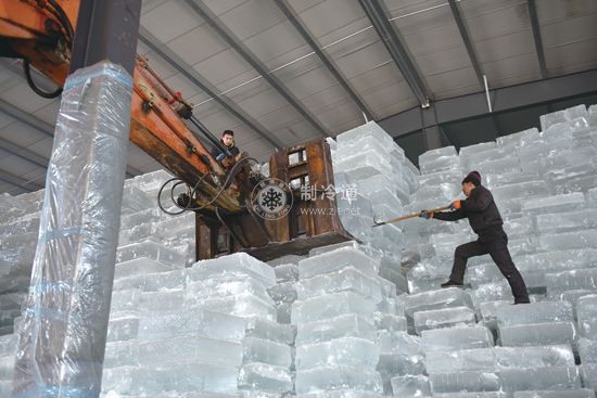 人工堆碼冰垛時,單層庫的凈高宜采用4. 2-6 m,多層庫的凈高宜采用4. 8-5. 4 m,冰堆頂部離頂排管或風管應留有1. 8~h(冰塊側高)m.以便人工操作。庫內采用行車堆碼時,建筑高度應不小于12 m。