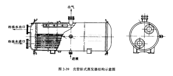 殼管臥式蒸發器結構緊湊,傳熱效果好。以鹽水作為載冷劑時,可以實現鹽水系統的封閉循環,它不僅系統簡單,而且減輕了鹽水對系統管路及設備的腐蝕。但是殼管臥式熬發器制冷劑的充裝量大,液體靜壓力對蒸發溫度的影響較大,而且用于氟利昂時,需要采取一定的回油措施,所以在氟利昂制冷系統中,逐漸用殼管干式蒸發器來代替殼管臥式蒸發器。
