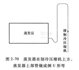 3)蒸發(fā)器在制冷壓縮機(jī)上方時(shí),蒸發(fā)器上部管應(yīng)做成如圖2-70所示的倒U形彎。