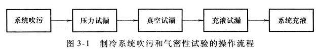 制冷系統(tǒng)吹污和氣密性試驗(yàn)的操作流程,如圖3-1所示。