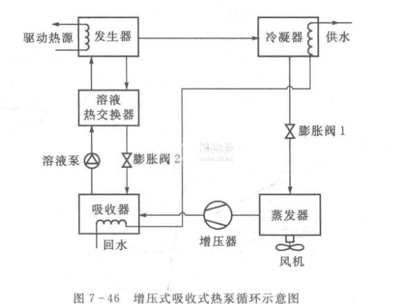 ①吸收式熱泵系統(tǒng)使用的是NH?一H?O或NH?一LiNO?作為吸收對(duì),其蒸發(fā)溫度可以低于零度;