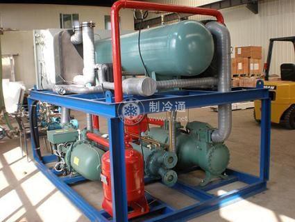 復疊式制冷機啟動時應遵循嚴格的順序進行。由于較低溫度級所用的制冷劑的臨界溫度都較低,在常溫下不可能冷凝;且因活塞式壓縮機的最高工作壓力通常不高于2MPa;應先啟動高溫部分,待中間溫度下降到足以保證較低溫度部分的冷凝壓力不超過1. 6MPa時,再啟動較低溫度部分。如此一部分一部分的啟動,直至最低溫度部分啟動為止。