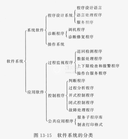 由于微計算機控制系統的應用范圍、完成功能和規模不同,軟件系統包括的內存、分類的依據各有不同,就工業制冷控制系統來說,基本功能的分類如圖13-15所示。