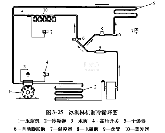 制冷系統由壓縮機、冷凝器、膨脹閥或毛細管、蒸發器等組成,如圖3-25所示。