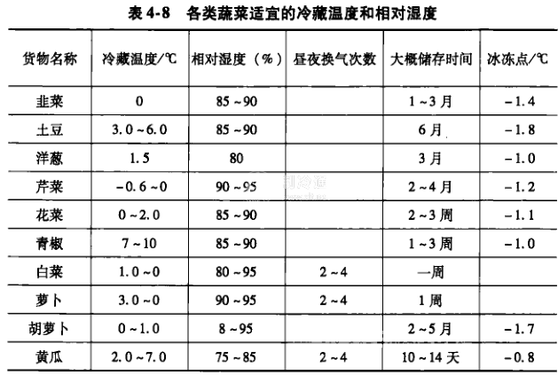 蔬菜不同,運(yùn)送時(shí)要求溫度和濕度也不同.其具體要求見表4-8。