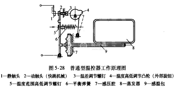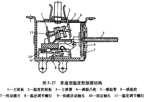 用于冷藏箱的普通型溫度控制器也稱為一般型或標準型溫度控制器,其結構如圖5-27所示。