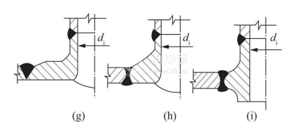 整鍛件補強如圖7一14(g)~(l)所示。其優點是補強金屬集中于開孔應力最大的部位,應力集中系數最小,并且采用對接焊縫,使焊縫及其熱影響區離開最大應力點的位置,抗疲勞性能好,疲勞壽命約縮短10%一15%左右。若采用密集補強形式[圖7一14(h)],又加大過渡圓角半徑,則補強效果更佳。但整鍛件制造較困難,加工量大,所以只有在嚴格規定或操作條件惡劣的重要設備上采用。