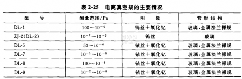 國產的電離真空規管的主要情況可如表2-25所示。