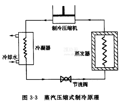 蒸汽壓縮式制冷系統,是由壓縮機作功來實現制冷的。其工作原理如圖3-3所示。