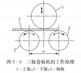 筒節卷制工作通常是在卷板機上進行的。常用的卷板機可分為三輥卷板機和四輥卷板機兩類,見圖9一6、圖9一7。由于四輥卷板機設備龐雜,投資費用較高,近年來,逐漸有被新型的三輥卷板機代替的趨勢。