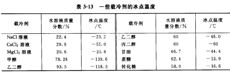 一些載冷劑的冰點溫度,可如表3-13所示。