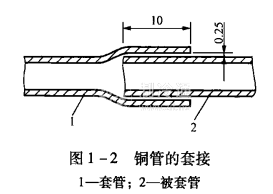 銅管焊接不能采用管口對管口的對焊法,因為這種方法易造成焊口強度變低,容易出現裂痕和形成焊堵故障。因此,一般要采用套接的方法,如圖1一2所示。這樣在焊接前就需要對作為套管的銅管進行漲套口。為了增加焊口的焊接強度,一般要使套管套口的內徑大于被套管外徑0. 5mm左右,套口的長度應在10mm左右,以便焊料熔液能夠流入套口間隙中,形成能滿足需要的焊接面。