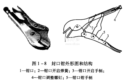 制冷設(shè)備維修中為了給管道封口,要經(jīng)常用到封口鉗。封口鉗外形圖和結(jié)構(gòu)如圖1一8所示。