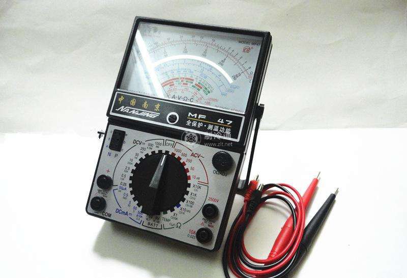 指針式萬用表如圖所示,從圖中可以看到指針式萬用表前面板安裝有表頭、轉(zhuǎn)換撥子旋鈕、測量表筆插孔及歐姆調(diào)零旋鈕。