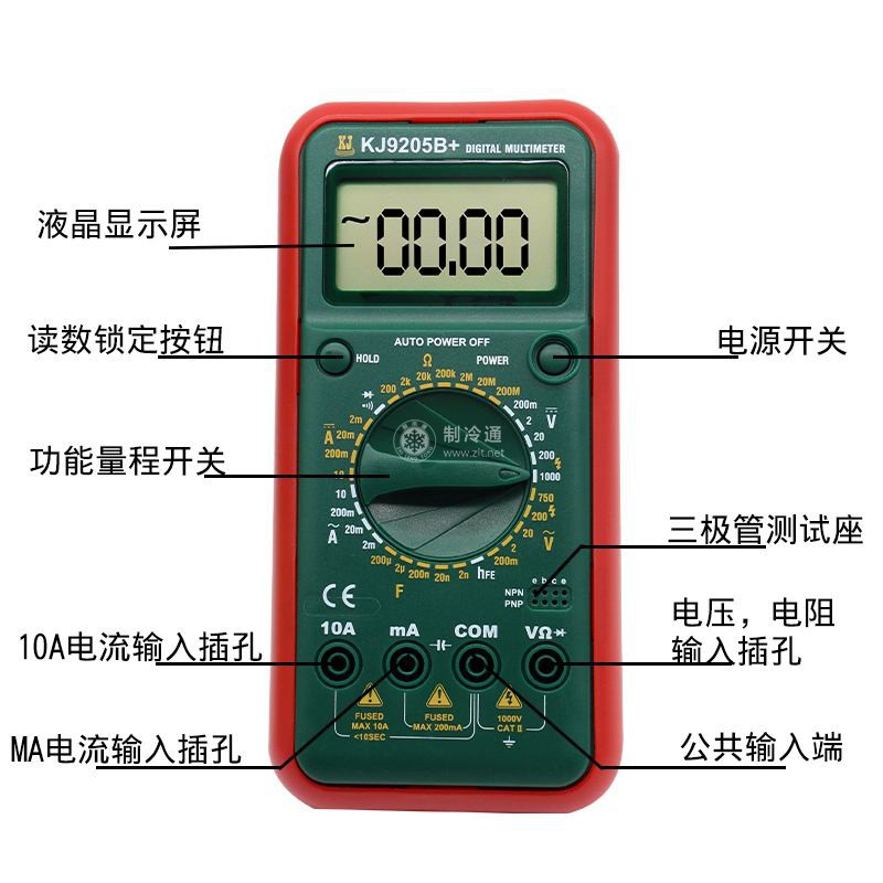 4) hFE值測量。根據被測管類型(PNP或NPN)的不同,把量程開關轉至“PNP"或“NPN”處,再把被測管的三只管腳插入相應的B,C,E孔內,此時,顯示屏將顯示出放大系數β。