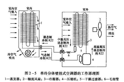單冷分體壁掛式空調(diào)器的工作原理如圖25所示,其工作過程如下。