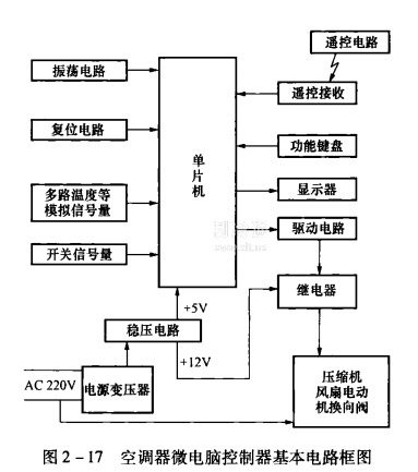 空調器微電腦控制器基本電路框圖如圖2一17所示,一般由七部分組成。